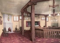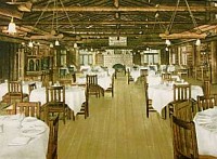 Colter's original dining room furnishings, visible in the historic photos at left, were a rustic Stickley-type design in a straightforward Arts & Crafts style. The current seating has a more machined look, perhaps a safer match to the subtle Victorian influences in the building. Sometimes we need to be reminded that the El Tovar is a working hotel, not a museum, and the current seating is arguably more appropriate for today's upscale dining experience.